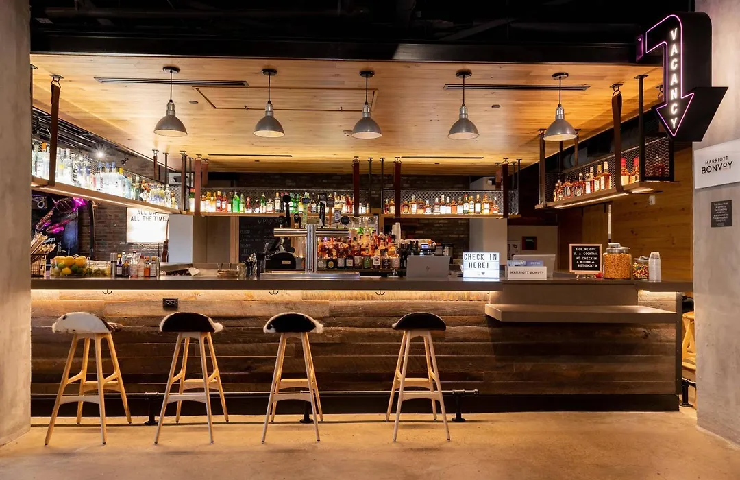 Moxy Nashville Downtown features Bar Moxy, a coffee shop/lounge that serves drinks and small plates. It acts as a social hub for hotel guests and locals, offering a chance to unwind with cocktails and listen to live music. Nearby dining options include Merchants Restaurant and Johnny Cash Museum, each 0.3 miles away.