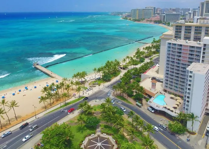 Park Shore Waikiki is positioned across from Kuhio Beach and Kapiolani Park, with attractions like the Honolulu Zoo and Waikiki Aquarium within walking distance. Transportation options include local bus services and ride-sharing apps like Uber and Lyft.