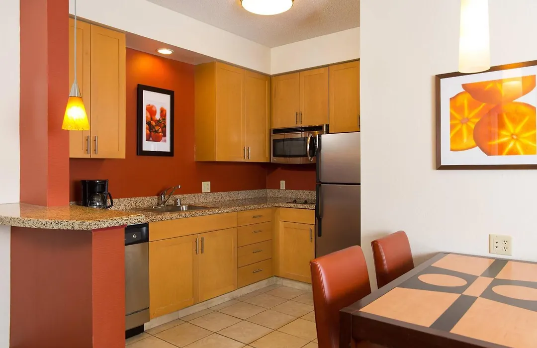 Each suite at Residence Inn Kansas City Airport includes a full kitchen equipped with stovetops, refrigerators, and dishwashers, making it suitable for families and longer stays. Rooms feature modern decor, air conditioning, and flat-screen TVs with streaming services.