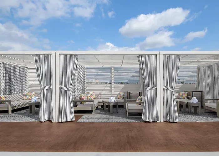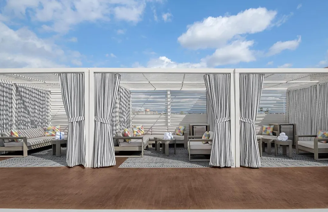 Leisure amenities comprise a heated outdoor swimming pool, rooftop pool, and a fitness center accessible 24 hours. Guests can host events in the meeting room that spans 275 square feet, ideal for social or business gatherings.