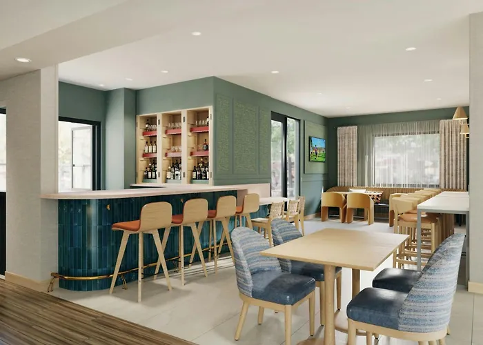 Dining options include a complimentary full hot breakfast buffet featuring Belgian waffles served each morning. The hotel hosts a manager's social reception on Monday, Tuesday, and Wednesday evenings from 5:30 to 7:30 PM, offering snacks, free beer, and wine. Nearby dining options include USS Nemo and Watermark Grille, both within a 0.5 miles radius.