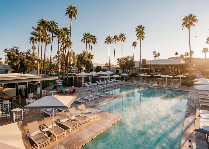 The spacious resort spans 23 acres of gardens and cactus landscapes, featuring three outdoor pools and a full-service fitness center. The Palo Verde Spa & Apothecary specializes in treatments using desert botanicals and offers relaxation areas for guests.