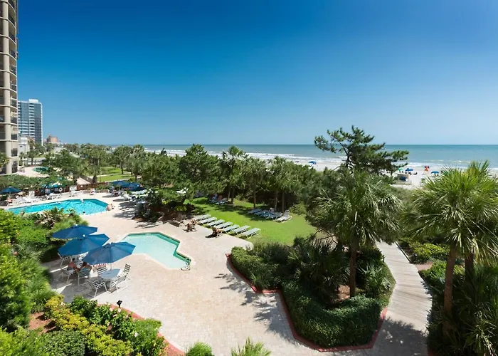 Beach Colony Resort, a 3-star Myrtle Beach hotel with a 7.3/10 rating on Booking.com, features direct oceanfront access and diverse recreational amenities, including multiple swimming pools and a lazy river. The resort caters to family-friendly vacations with spacious accommodations ranging from studios to four-bedroom condos.