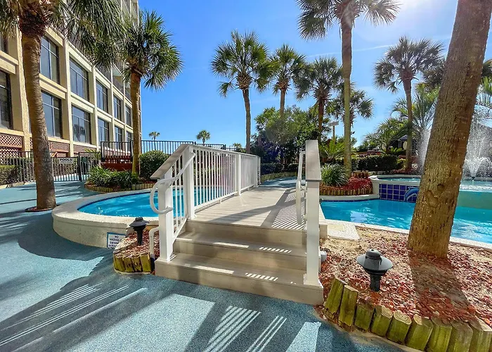 Beach Cove Resort offers a family-friendly atmosphere with all-oceanfront suites and condos, popular for their stunning views of the Atlantic Ocean. This 3-star Atlantic Beach hotel features multiple outdoor pools, a lazy river, and various dining options, making it suitable for guests of all ages.