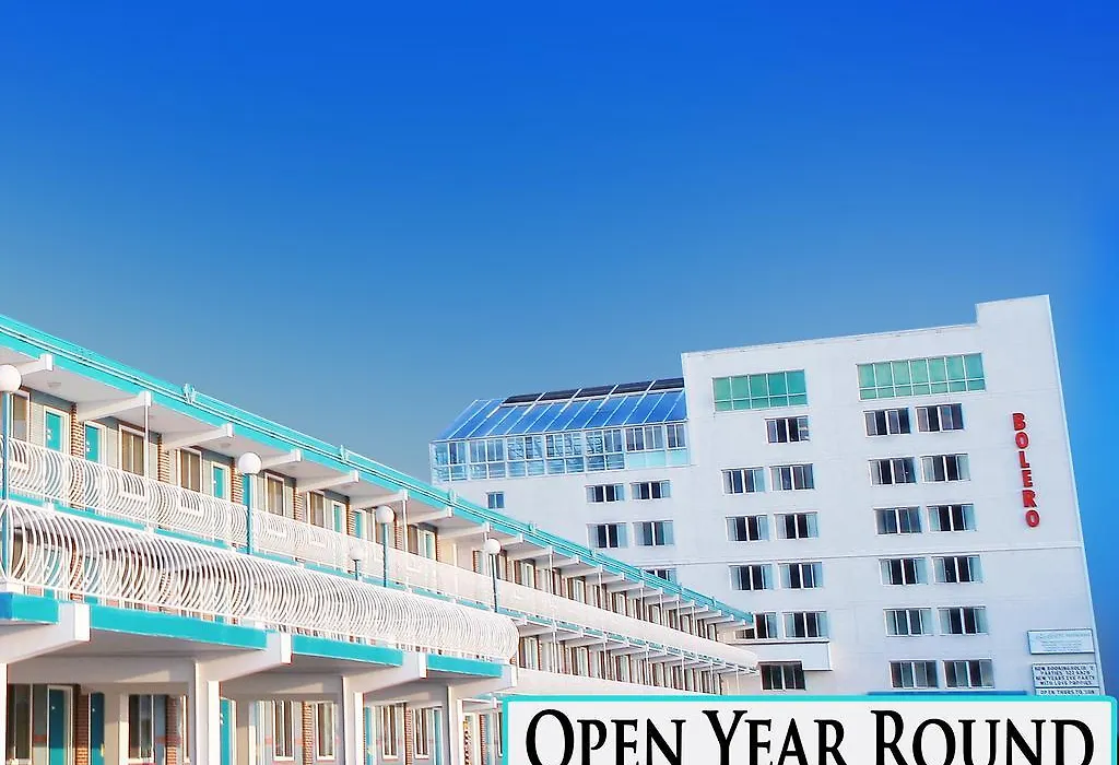Bolero Resort is a 3-star Wildwood hotel featuring an indoor rooftop pool and two on-site restaurants, including the Blue Water Grille. The resort offers 119 units with various room types, accommodating both families and groups seeking proximity to local attractions.