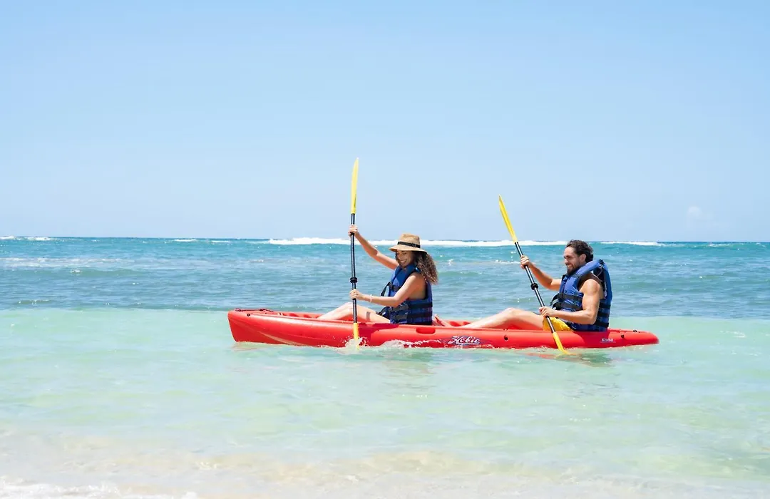 The resort features outdoor pools with jacuzzis, a gym, tennis courts, and water sports such as snorkeling, kayaking, and diving. An entertainment program for adults and kids is available, along with organized activities like mini golf and beach volleyball.