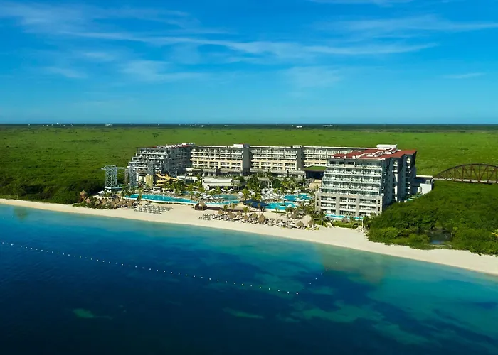 Dreams Natura Resort & Spa, a 5-star family-friendly beachfront resort, offers an Unlimited-Luxury(R) experience with modern design and luxurious accommodations. This Cancun hotel features 553 rooms and suites, numerous dining options, and extensive recreational activities for all ages.