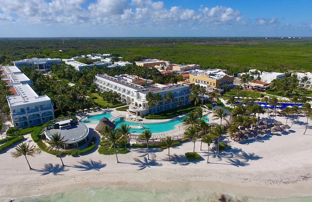 Dreams Tulum Resort & Spa (5-star, 7.9/10 on Booking.com) offers an all-inclusive experience on 2 miles of white sandy beach with activities for families, including an Explorer's Club for Kids and a Core Zone Teens Club. This AAA Four Diamond award-winning resort features luxurious accommodations and a wide variety of dining options within a tropical setting.