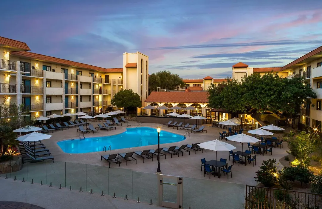 Embassy Suites By Hilton Scottsdale Resort, rated 8.3/10 on Booking.com, is a mid-range all-suite hotel featuring two outdoor heated pools, a fitness center, and a Hacienda-style lobby. The property provides access to local shopping and dining, including the Granada Bar & Grill and AZUL Clubhouse.