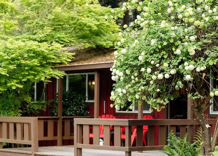 The accommodations at Fern River Resort include 15 cabins equipped with full kitchens, BBQ facilities, and outdoor picnic tables. Guests can enjoy cozy living spaces featuring queen beds, futons, and gas fireplaces in select cabins.