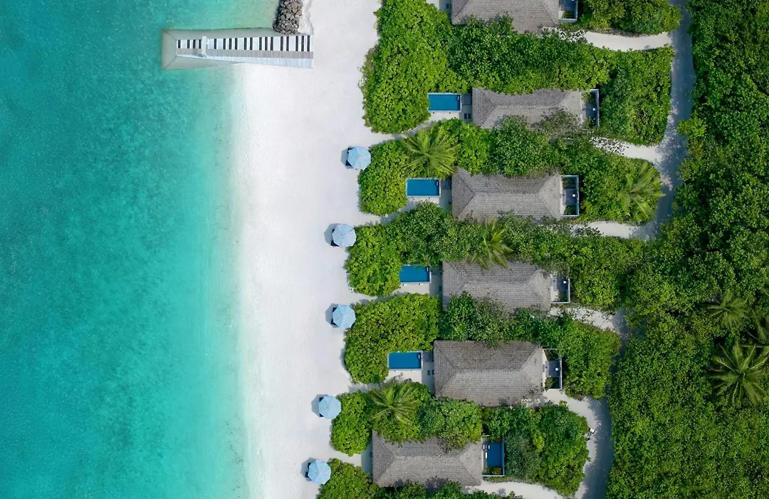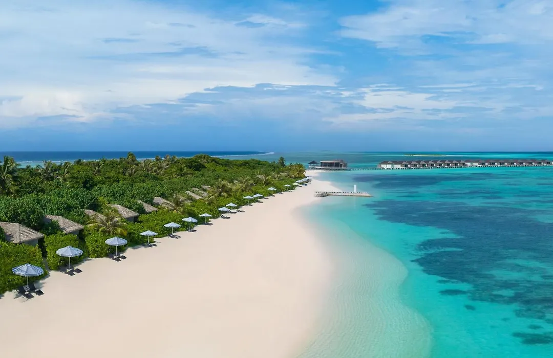 Le Méridien Maldives Resort & Spa, a 5-star hotel rated 9.6/10 on Booking.com, features a private island with a marine conservation hub, numerous dining options, and family-friendly programming. The resort offers 141 villas amidst tropical landscapes, each providing views of the Indian Ocean and air conditioning.