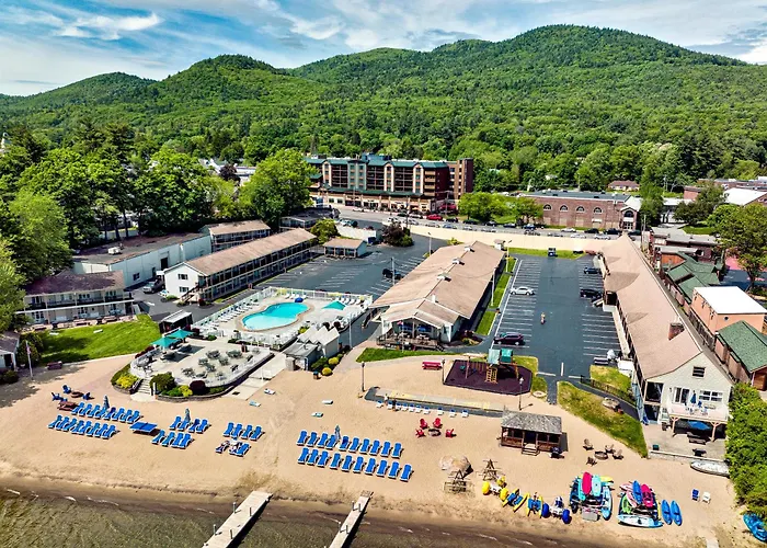 Marine Village Resort features 300 feet of private Lake George beachfront and an expansive 30'x55' heated pool. This 3-star hotel is designed for relaxation and offers a variety of accommodations, including lakeside rooms and luxury suites.