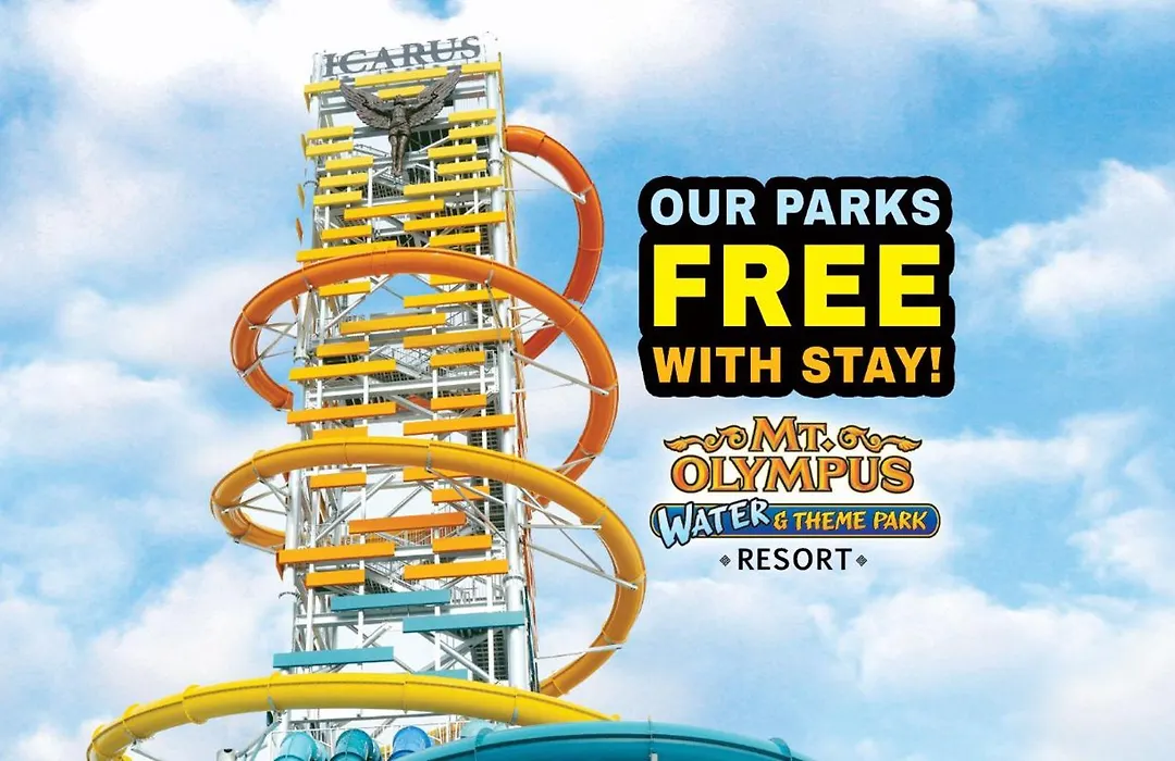 Accommodations at Mt. Olympus Water Park And Theme Park Resort include various options such as rooms equipped with air conditioning, free Wi-Fi, and flat-screen TVs. Guests can enjoy access to outdoor areas like balconies or patios, with options for bunk beds and kitchenettes available.
