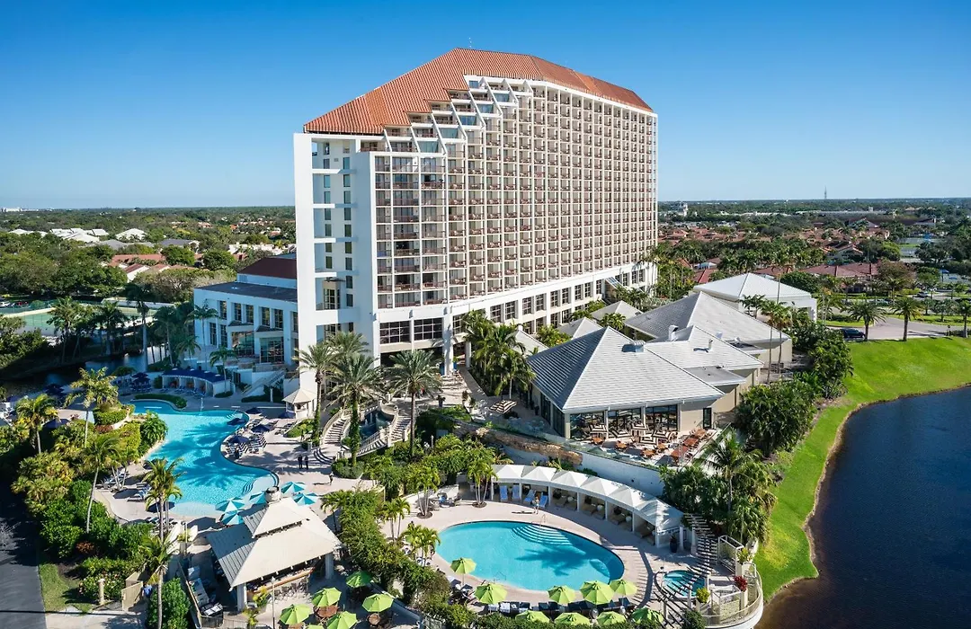 Naples Grande Beach Resort, a 4-star destination rated 8.2/10 on Booking.com, offers extensive amenities including a championship golf course, spa, and multiple dining options. This Pine Ridge hotel spans 23 waterfront acres, surrounded by acres of protected mangrove estuary for a unique experience.