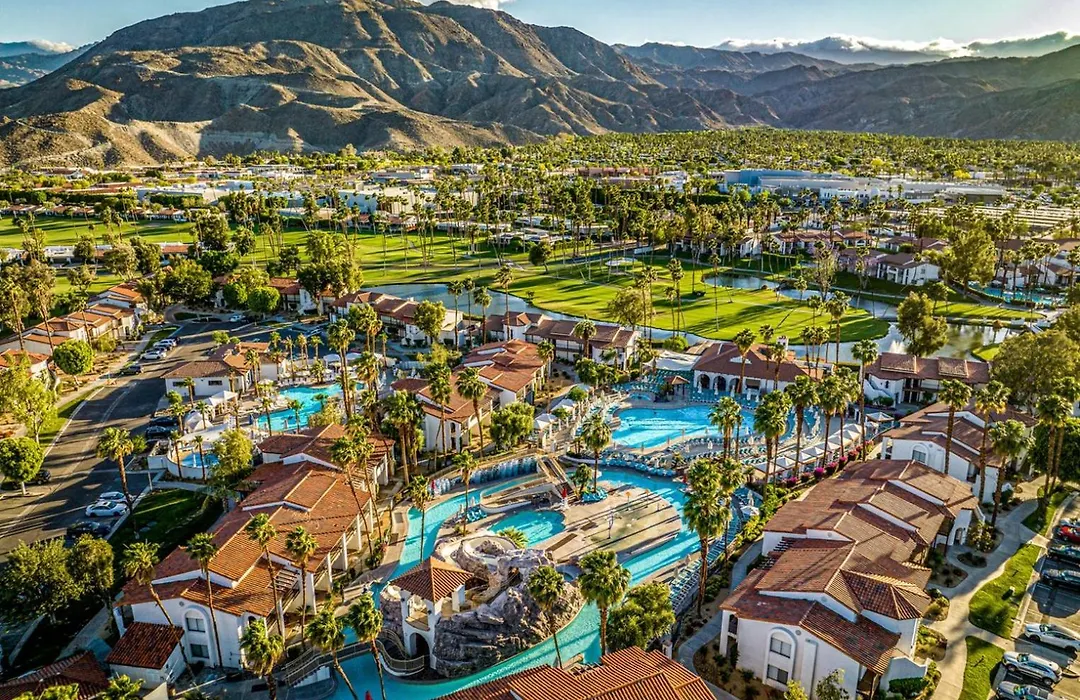Dining options include bluEmber, which serves inventive California New American cuisine with local ingredients, and the Conchilla Valley Pool Bar & Grill, offering California-coastal dishes. The resort also features a café for light meals and a nostalgic Tiki Social bar for unique cocktails.
