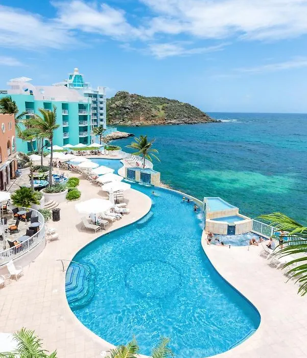 Oyster Bay Beach Resort offers a four-star experience with stunning ocean views, an infinity pool, and direct access to the renowned Dawn Beach. This resort features various accommodations, dining options, and recreational amenities, making it suitable for families and individuals looking to enjoy the Caribbean.