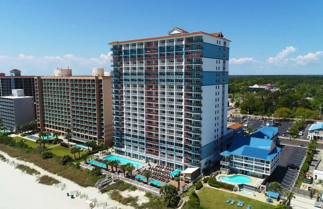 Paradise Resort is a 3-star Myrtle Beach hotel rated 8.4/10 on Booking.com, offering beachfront access and family-friendly accommodations. Guests can enjoy amenities like an outdoor pool, a fitness center, and free WiFi throughout the property.