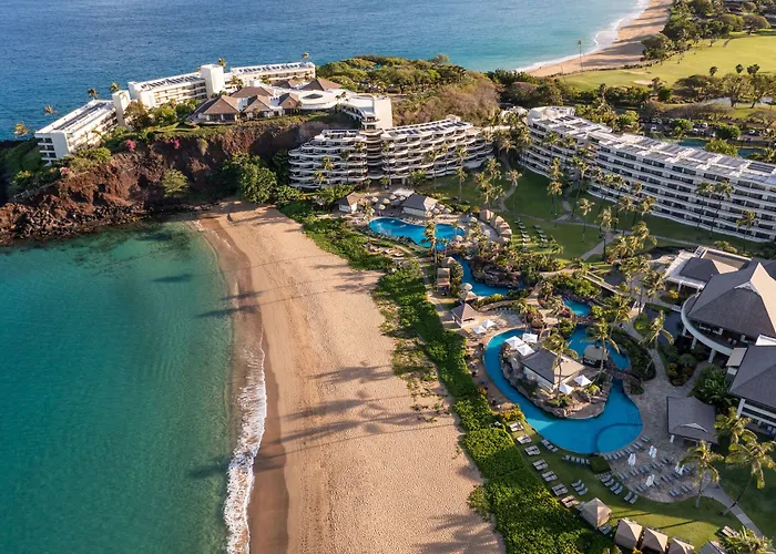 Sheraton Maui Resort & Spa features a lagoon-style pool and extensive beachfront access on Kaanapali Beach, with a 4-star rating of 8.2/10. This resort offers a blend of culinary experiences and leisure activities for families and couples alike.