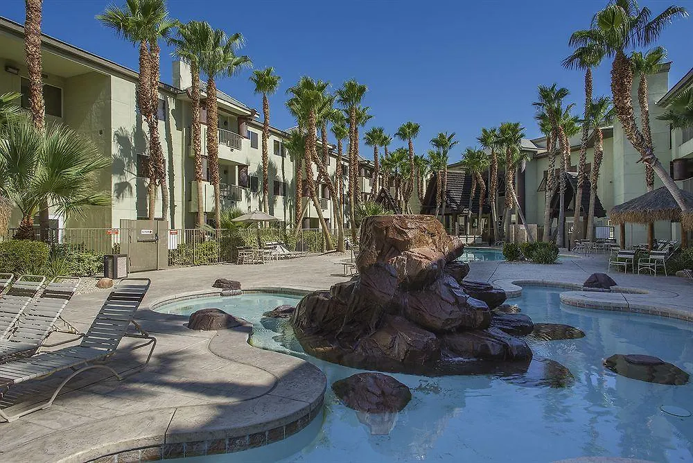Tahiti All-Suite Resort offers an expansive, tropical retreat just minutes from the vibrant Las Vegas Strip, featuring spacious all-suite accommodations, two pools, a hot tub, and a putting green. Rated 8.5/10 on Booking.com, this 4-star Las Vegas hotel caters to families and couples looking for comfort and privacy.