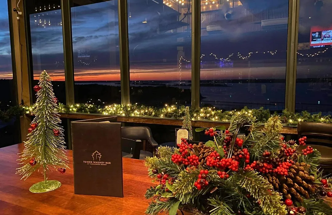 Guests can dine at Lakeview Steakhouse, Tanglewood Bar & Grill, or enjoy a drink at the Tower Whiskey Bar, all offering views of the lake. The dining venues cater to different tastes and include options for casual and upscale meals. The 19th Hole Grill is also available for guests seeking food at the golf course.
