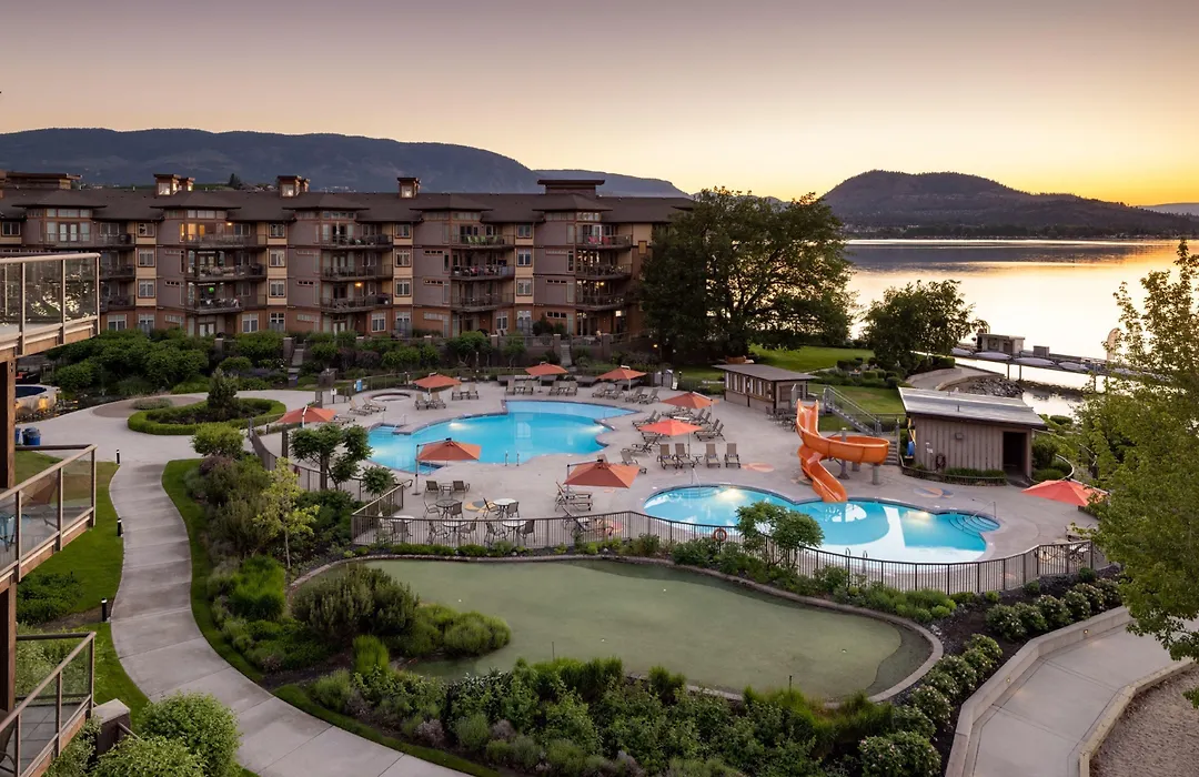 The Cove Lakeside Resort features luxurious lakefront accommodations within a tranquil setting, boasting amenities like two outdoor pools and on-site dining at The Landing Kitchen + Bar. This 4-star West Kelowna hotel is ideal for families, couples, and pet owners, offering exceptional service with a Booking.com rating of 8.4/10.