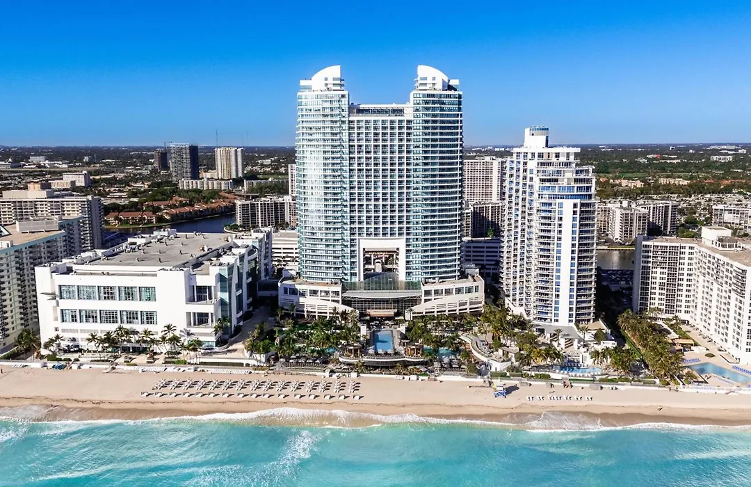 The Diplomat Beach Resort Hollywood, Curio Collection by Hilton is a 4-star beachfront resort in Hollywood, offering a striking glass tower design and exceptional amenities. This property features ocean-view pools, a well-rated spa, and multiple dining options, appealing to families and couples alike.