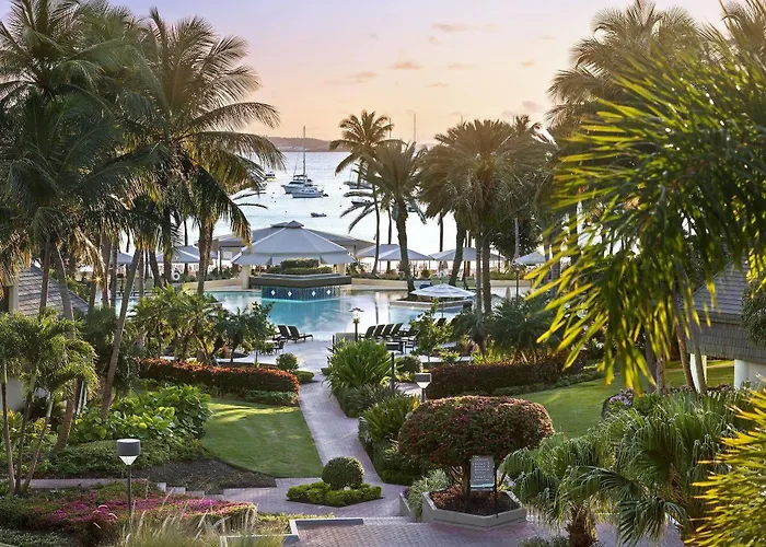 The Westin St. John Resort Villas offers 4-star accommodations with spacious villas featuring full-sized kitchen appliances, washers, dryers, and views of Great Cruz Bay. Guests can enjoy a quarter-acre pool, private beach access, and various water sports activities. The property blends luxury with family-friendly options, including a Kids Club and multiple dining venues.