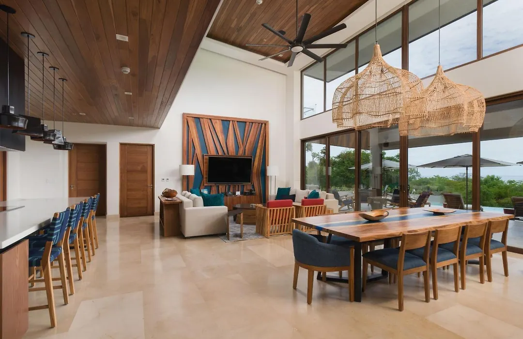 The accommodations at W Costa Rica Resort - Playa Conchal offer stunning views from private balconies and include amenities such as a seating area and a Mixbar featuring a local custom-crafted surfboard tabletop. Various room options are available, including the expansive E-Wow Suite with two bedrooms and a private plunge pool.