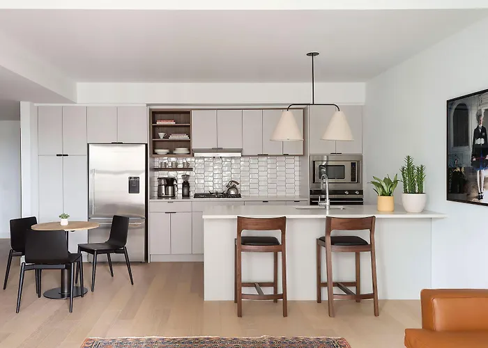 Roost East Market provides 60 furnished apartments, each equipped with a fully operational kitchen, 4K Apple TVs, and a washer & dryer. Designed to feel like home, these accommodations include SFERRA linens, Davines bath amenities, and ample workspace.