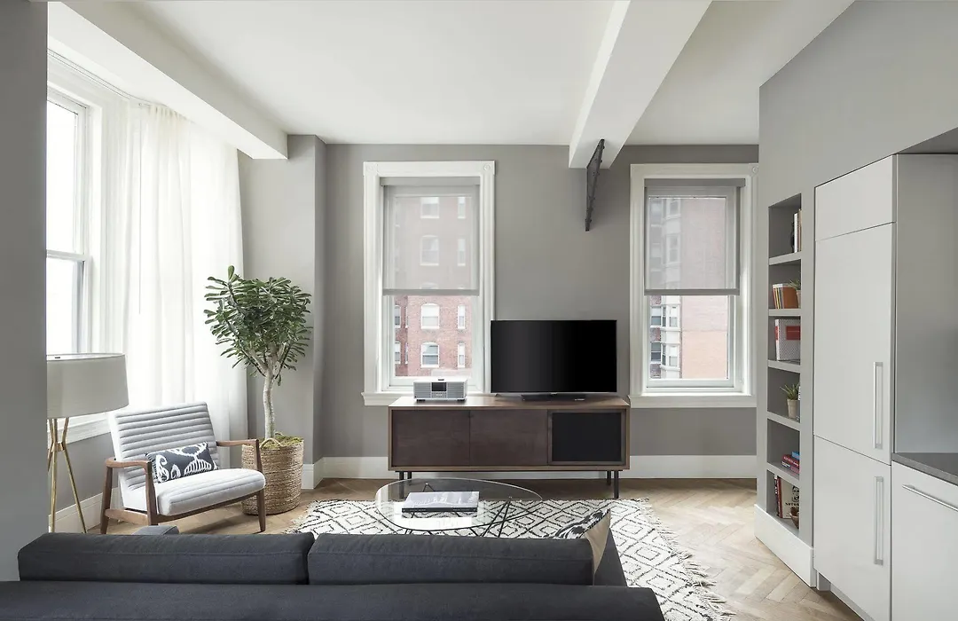 Roost Rittenhouse, a 4-star Philadelphia hotel rated 8.7/10 on Booking.com, features fully furnished apartments with high-end amenities. Known for its elegant design, it combines the comfort of an apartment with hotel services.