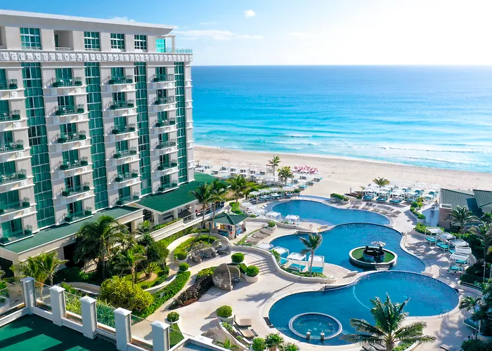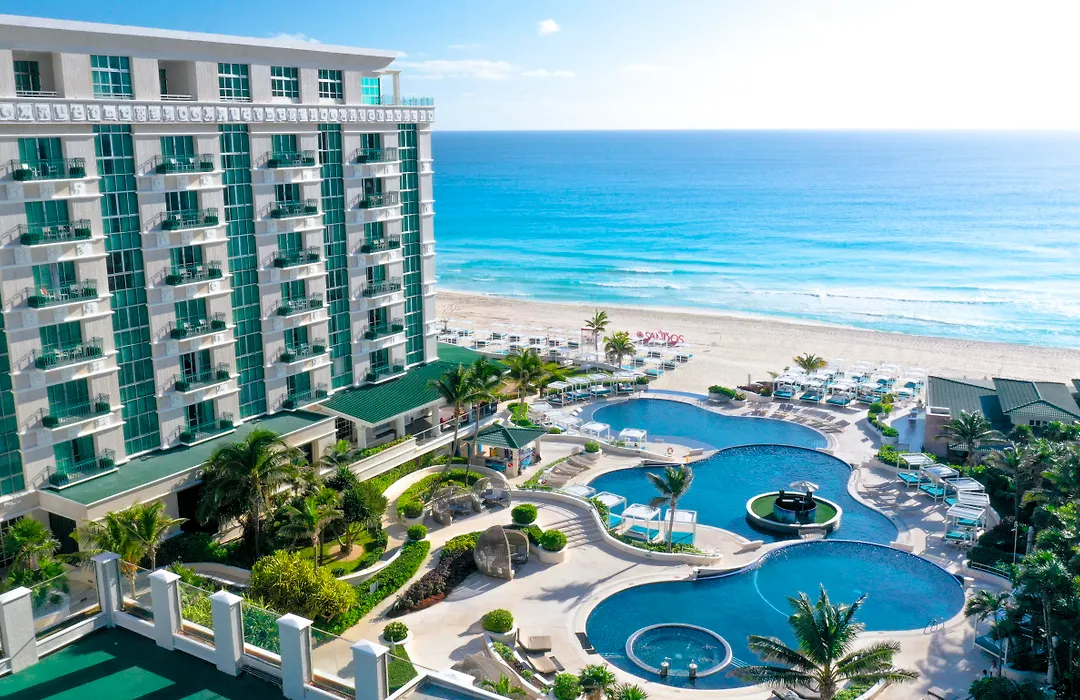 Sandos Cancun All Inclusive - Adults Only is a luxurious 5-star hotel featuring a Grand Pool Complex and a wide array of dining options. This adults-only property offers amenities like a luxurious spa, fitness center, and a vibrant atmosphere set on the white sands of Cancun's coastline.