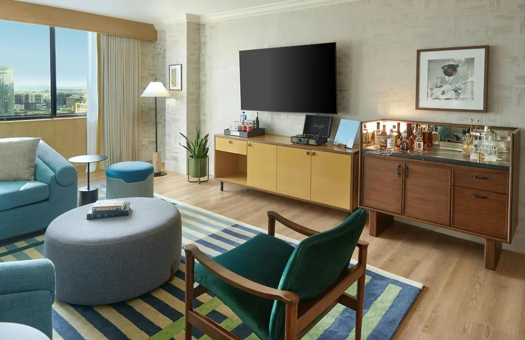 Rooms at Sheraton Grand Nashville Downtown feature the signature Sheraton Sleep Experience, high-speed Wi-Fi, and flat-screen TVs. Options include executive Suites, City View suites, and a Presidential Suite with a view of the Capitol.
