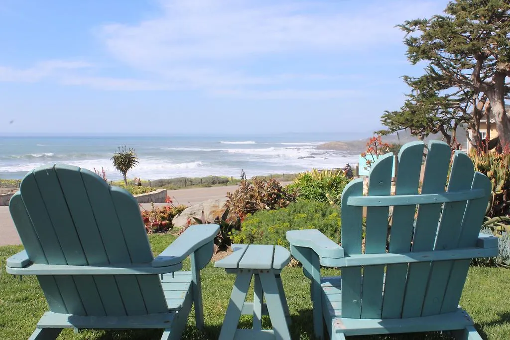 Cambria Shores Inn features gardens with ocean and sunset views, accessible seating areas, and a terrace. Dogs are provided with their own setup, reflecting the hotel's pet-friendly demeanor.