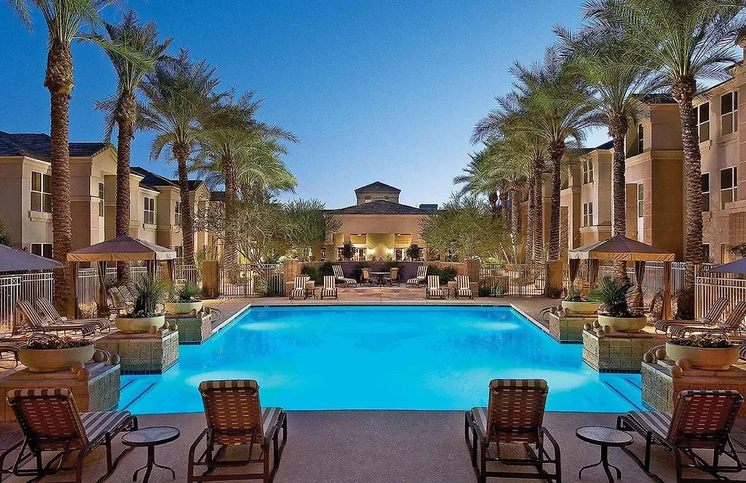 The Sonesta Suites Scottsdale Gainey Ranch features 162 spacious studio and one-to-two-bedroom suites, each equipped with fully-equipped kitchens, plush bedding, and allergy-free linens. Guests can enjoy a separate living room and bedroom, with select suites offering patios overlooking lush gardens.