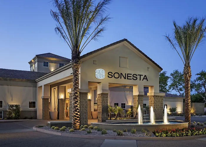 Sonesta Suites Scottsdale Gainey Ranch is a 4-star all-suite hotel featuring spacious accommodations alongside a heated swimming pool and access to Gainey Village Health Club & Spa. The hotel offers a range of amenities including a complimentary hot breakfast buffet and state-of-the-art conference rooms.