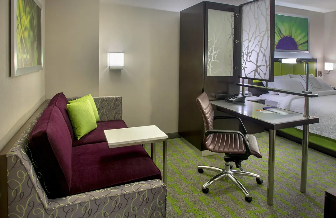 Guestrooms at Springhill Suites feature ergonomic work desks, plush bedding, laptop-compatible safes, and air conditioning. Some suites offer city views, flat-screen TVs, and a walk-in shower.