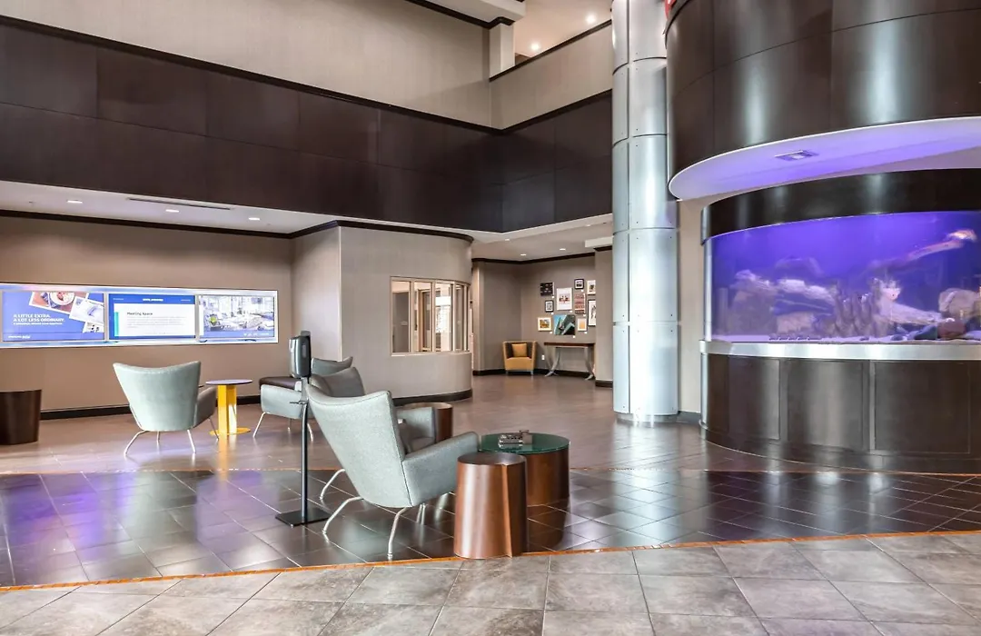 This Woodway hotel serves a complimentary breakfast that includes hearty options like waffles and fresh fruit. The Aqua Lounge offers light fare along with craft cocktails in an inviting setting for evening relaxation.