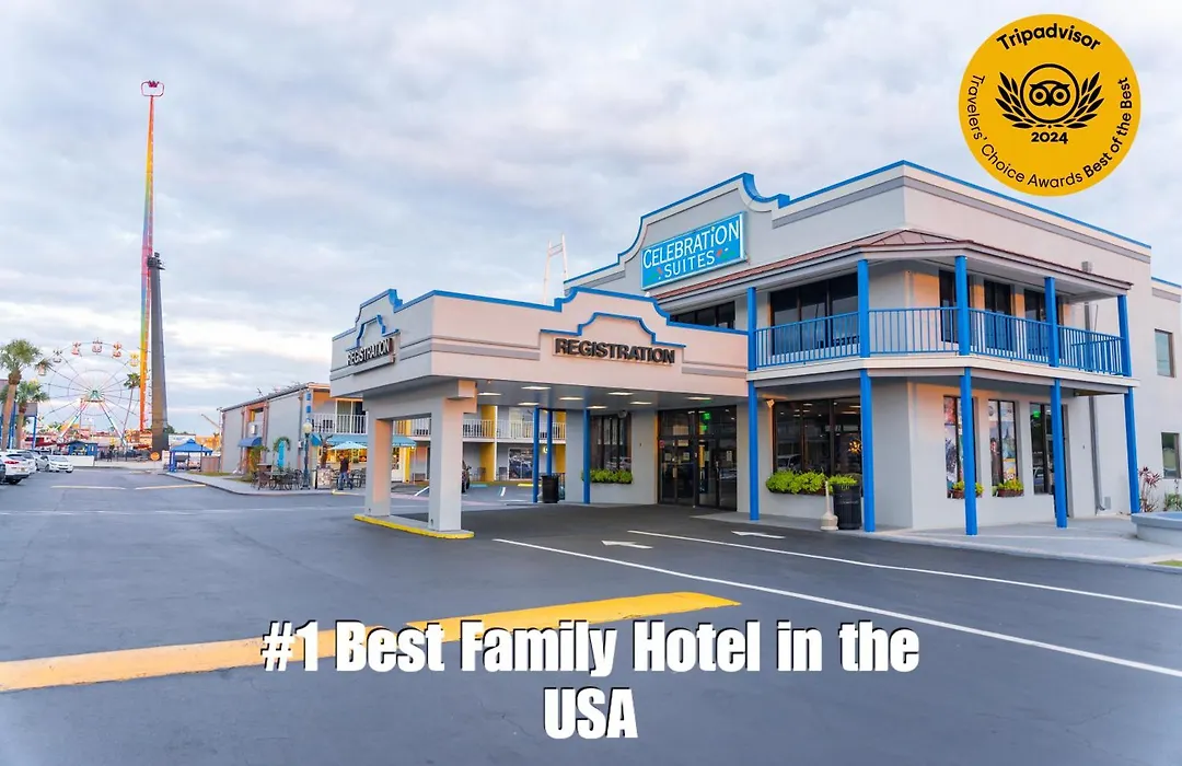 Celebration Suites, a 3-star hotel with a 9.1/10 rating on Booking.com, offers spacious suite-style accommodations ideal for families. Featuring three outdoor pools, a beach tennis court, and complimentary high-speed Wi-Fi, the hotel ensures a practical stay in the heart of Kissimmee.