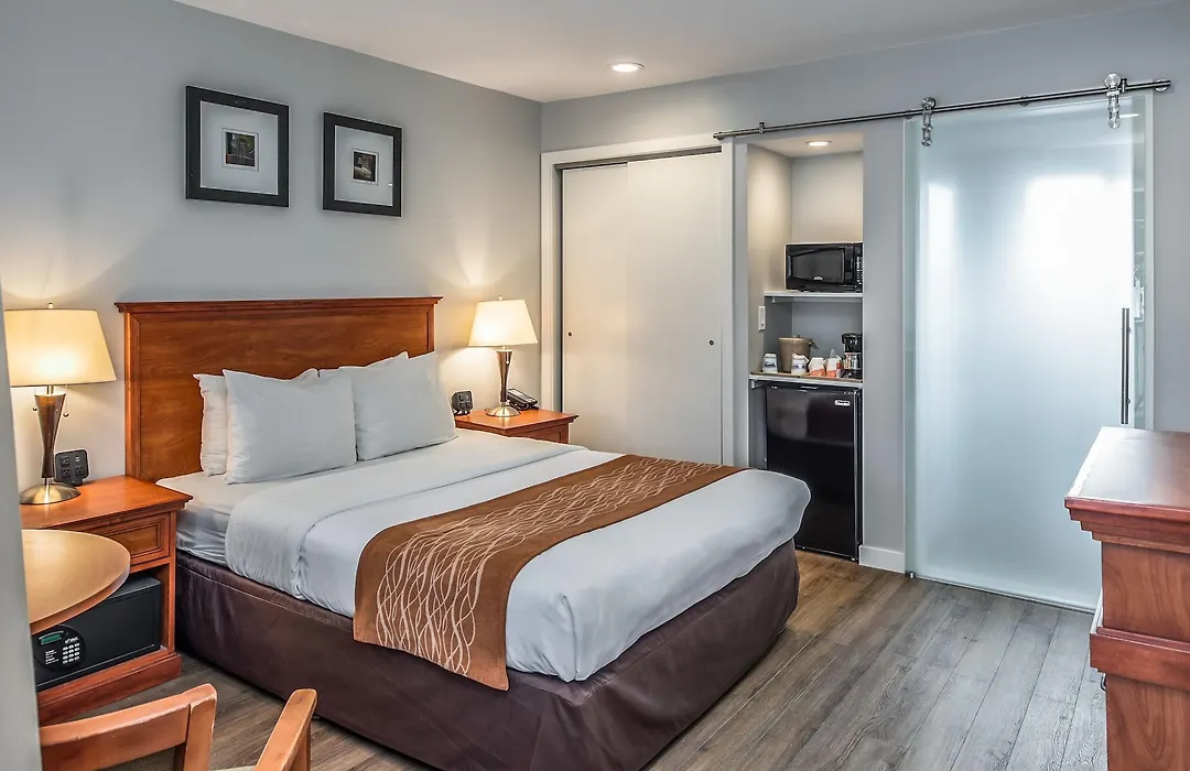 Rooms at The Inn At 1252 Monterey feature comfortable bedding, flat-screen TVs, refrigerators, and microwaves. Thoughtful family suites accommodate larger groups with additional amenities like connected rooms. Free Wi-Fi is available throughout the property.