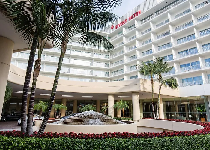 The Beverly Hilton is a 5-star hotel with a 7.7/10 rating on Booking.com, featuring modern amenities and luxurious accommodations in a vibrant setting. It offers a renowned International Ballroom and a gourmet rooftop restaurant. This iconic Los Angeles hotel boasts 566 guest rooms, including elegant suites with panoramic city views.