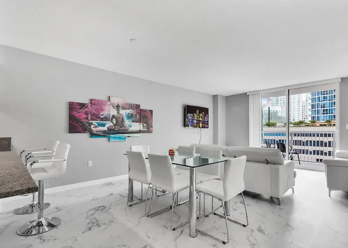 The Club At Brickell Bay Luxury Suites offers 4-star accommodations with a pool and business center in a vibrant shopping area of Downtown Miami. This luxury condo is equipped with essential amenities such as free Wi-Fi and secured onsite parking for guests.