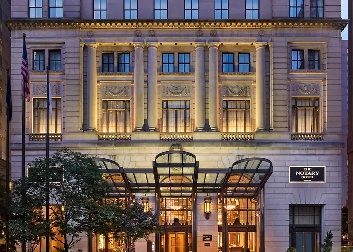 Experience a compelling blend of historic architecture and modern luxury at The Notary Hotel, Philadelphia, Autograph Collection By Marriott, a 5-star hotel rated 8.3/10 on Booking.com. This boutique hotel features an inspired 1920s décor and is located in the heart of Center City, providing easy access to various iconic landmarks.