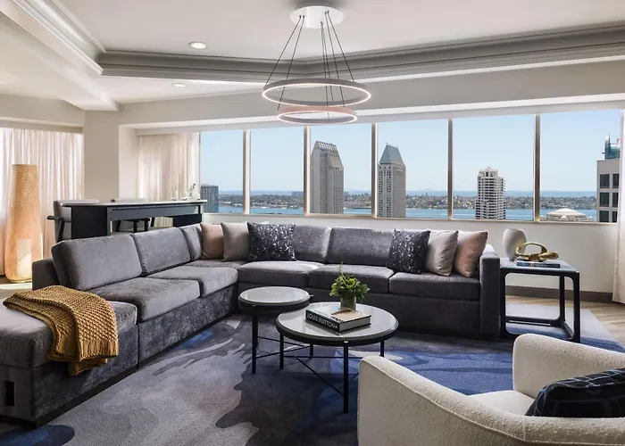 The Westin San Diego Bayview, a 4-star hotel rated 7.9/10 on Booking.com, features upscale accommodations in the heart of downtown San Diego. Guests can enjoy an outdoor pool, on-site dining, and free shuttle service to/from San Diego International Airport.