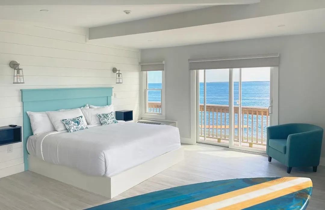 At Falmouth Tides, guests can enjoy beach activities, including swimming at the exclusive beach, cornhole, paddleboarding, and beach volleyball. There are also on-site bicycles available for rent to explore the scenic surroundings. The hotel is less than a mile from the Island Queen Ferry for trips to Martha's Vineyard.