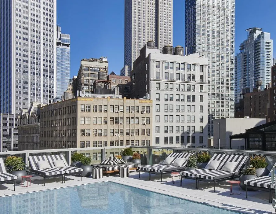 Dining options include Everdene, which serves New-American cuisine and offers expansive views of the Empire State Building. Additionally, guests can unwind at The Pool Club, which provides seasonal light bites and cocktails by the rooftop pool.