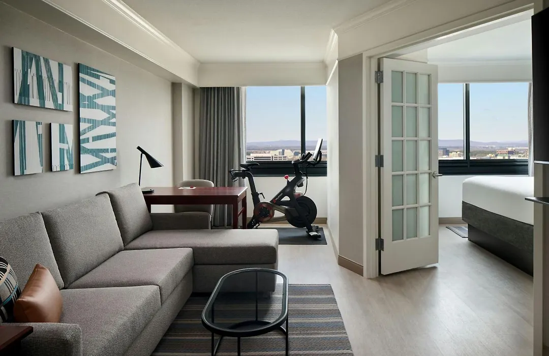 All accommodations at Washington Dulles Marriott Suites feature premium bedding, air conditioning, and separate living areas. Suites include a wet bar, mini-refrigerator, microwave, and safe. Each room is designed to provide a comfortable space with a TV offering access to Netflix and Hulu.