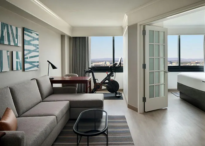 The hotel features an indoor pool and seasonal outdoor pool, enhancing leisure opportunities for guests. A 24-hour fitness center is available, accommodating all workout times. Washington Dulles Marriott Suites also provides five event spaces, making it suitable for business meetings and celebrations.